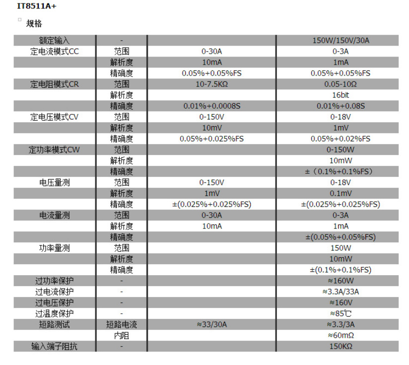 艾德克斯IT8511A+可编程直流电子负载150W/150V/30A电子负载仪