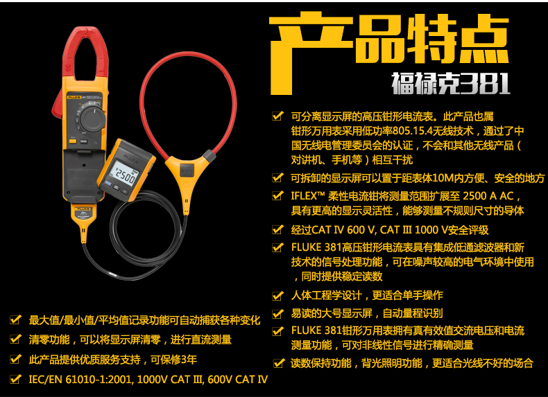 FLUKE/福禄克381/CN远程显示真有效值钳形万用表可分离显示屏