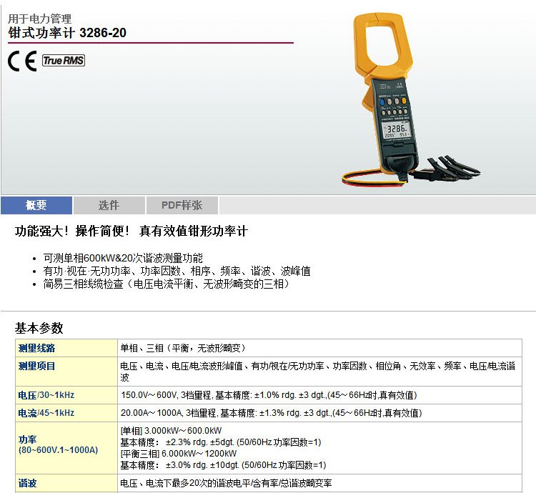 HIOKI/日置3286-20钳形功率计 真有效值钳形功率计原装进口