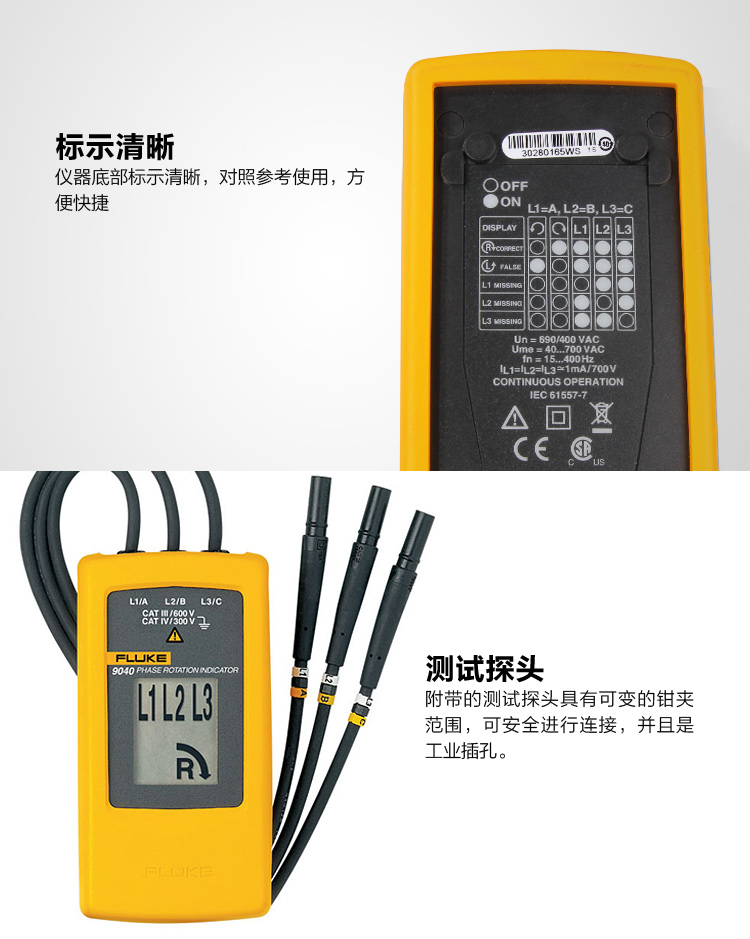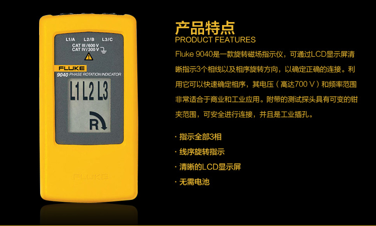 美国FLUKE/福禄克相序旋转指示仪F9040/F9062 相序表原装