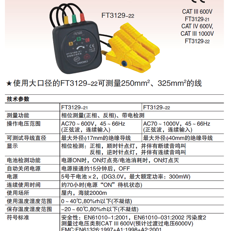 HIOKI/日置PD3129-32非接触式相序表PD3129-31相位计FT3129-21/22