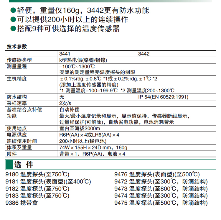 三年保修HIOKI/日置 3441温度计3442防水温度表原装