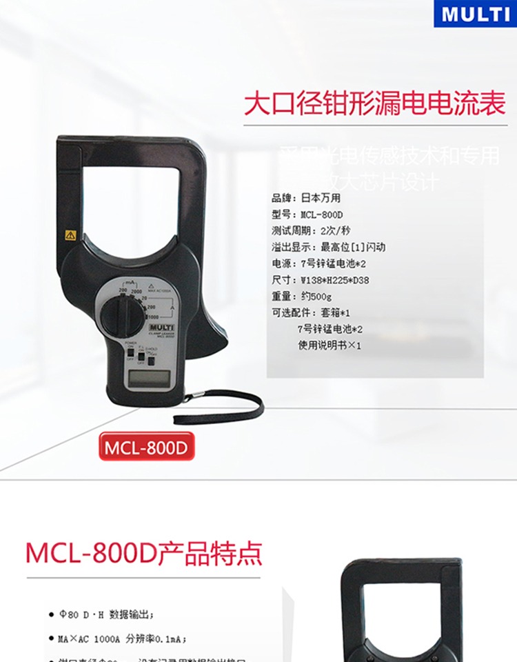 包邮保证日本万用MCL-800D大口径交流钳形漏电电流表