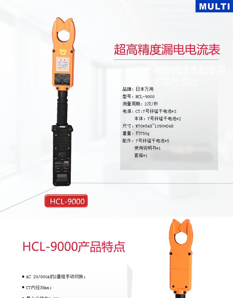 包邮日本万用HCL-9000高低压钳形电流表 漏电电流表 高精度电流表