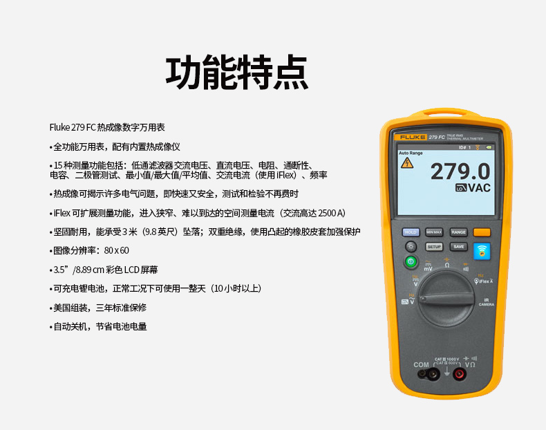 福禄克热成像万用表FLUKE279FC数字万用表热成像仪二合一多用表