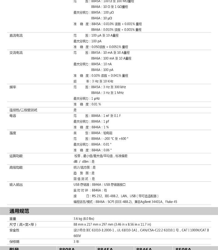 福禄克万用表Fluke8845A/f8846A六位半高精度台式数字多用表