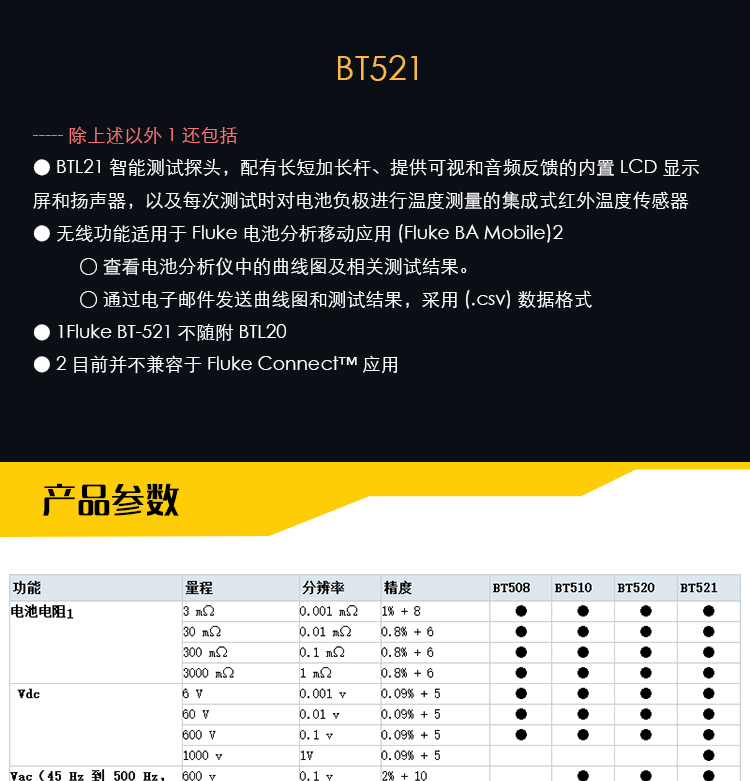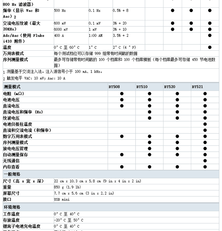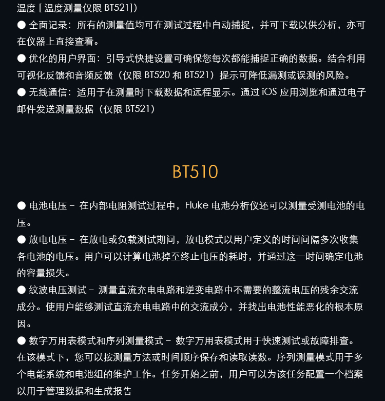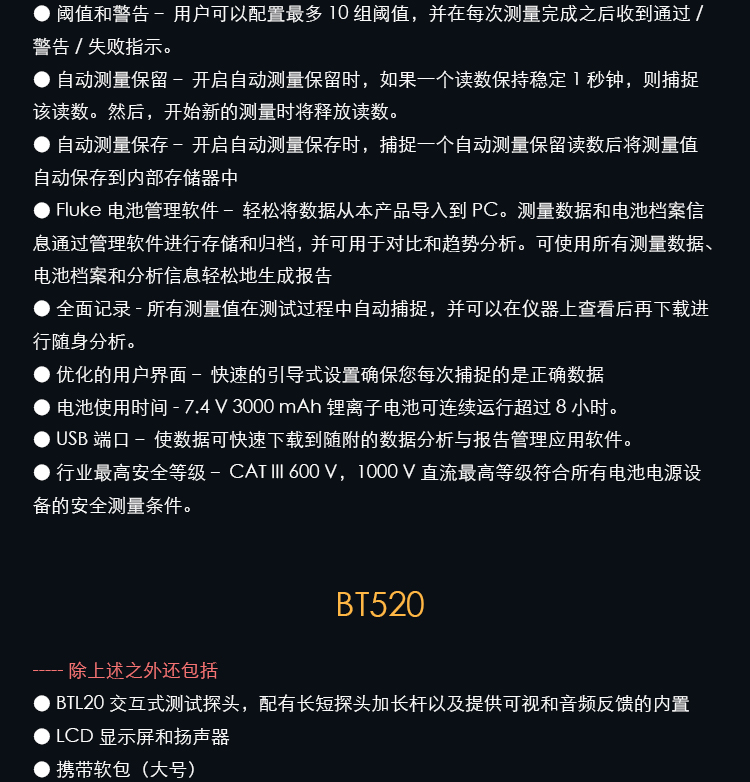FLUKE福禄克电池内阻测试仪/BT510/BT520/BT521蓄电池测试仪