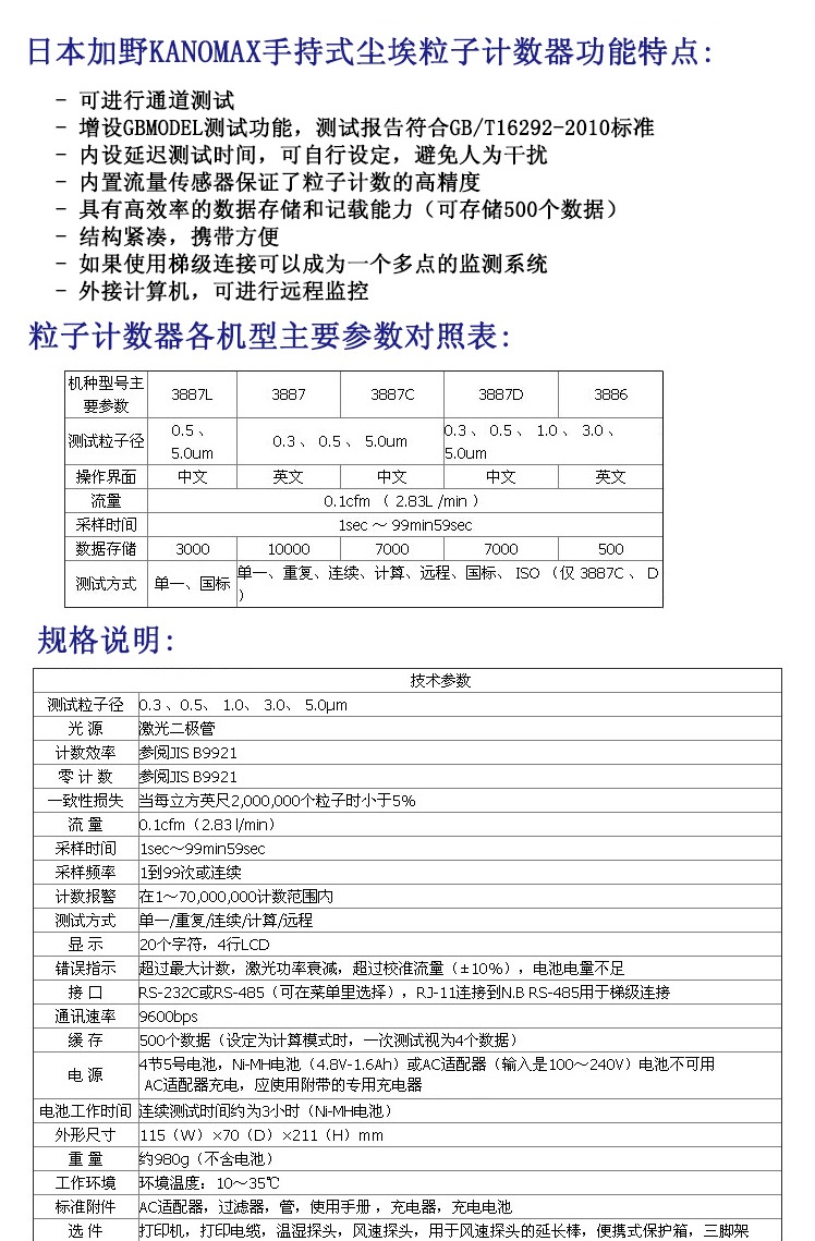 日本加野麦克斯KANOMAX 手持式尘埃粒子计数器3887/C/D/L