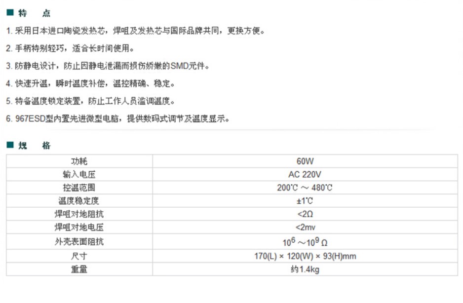 常州快克QUICK967E控温电焊台60W防静电数显控温烙铁480℃烙铁头