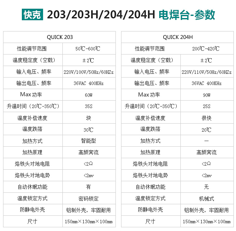 QUICK快克焊台203H/204H数显无铅高频焊台恒温90W大功率电焊台