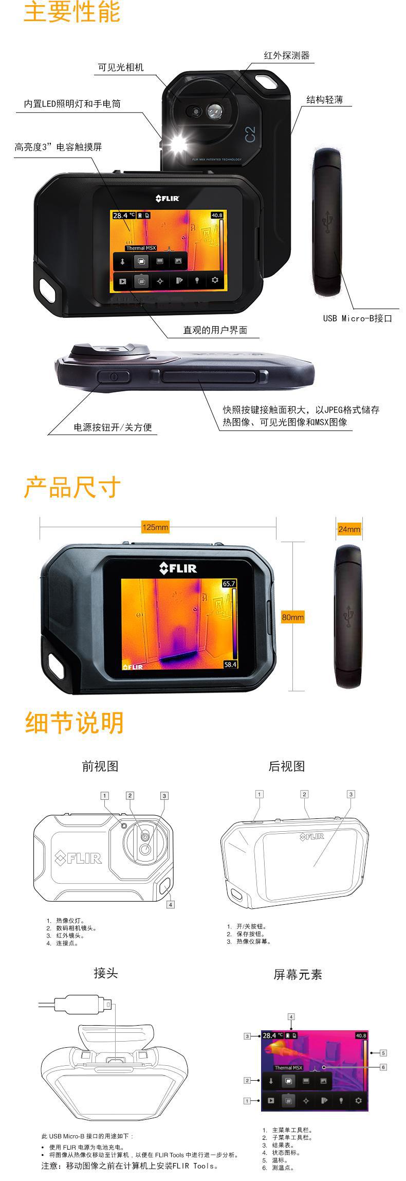 菲力尔FLIRC2口袋式热成像仪红外线热像仪居家建筑电气故障检修用