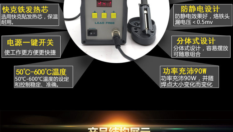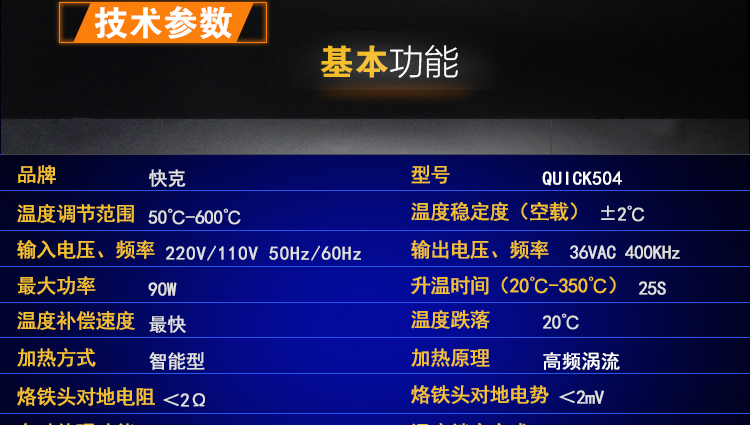 原装QUICK快克504 数显无铅烙铁 高频涡流发热无铅电焊台 90W