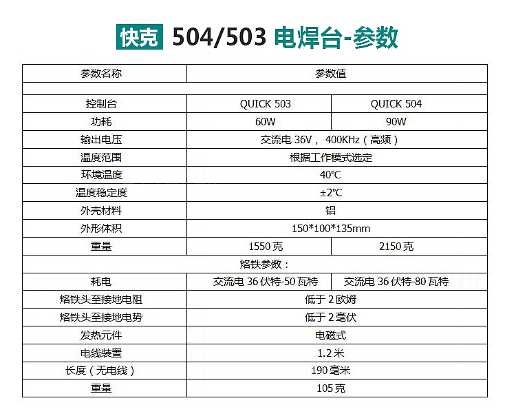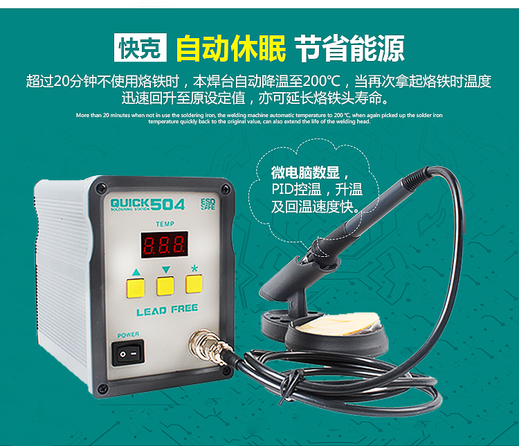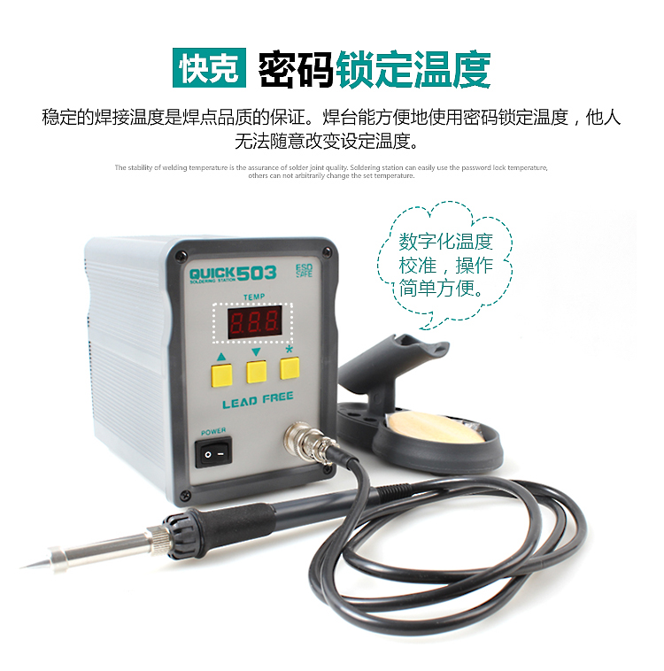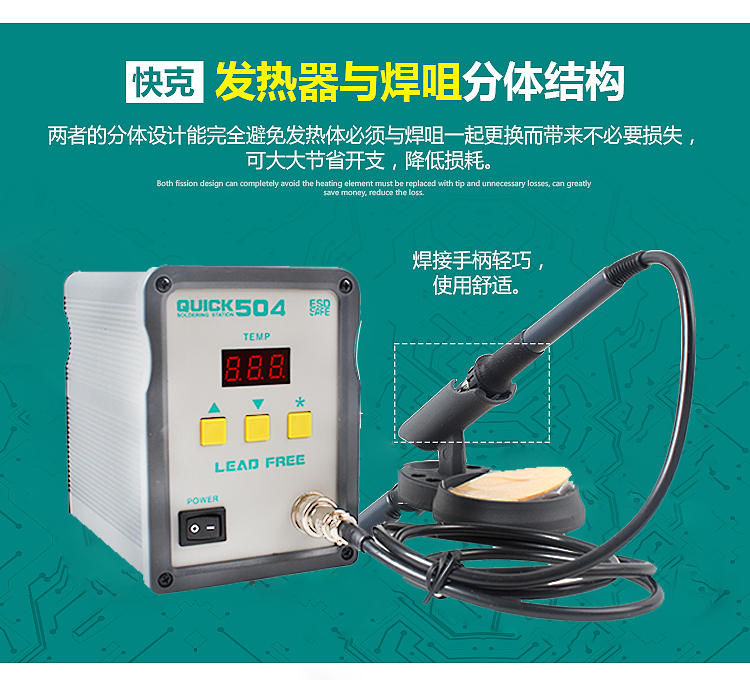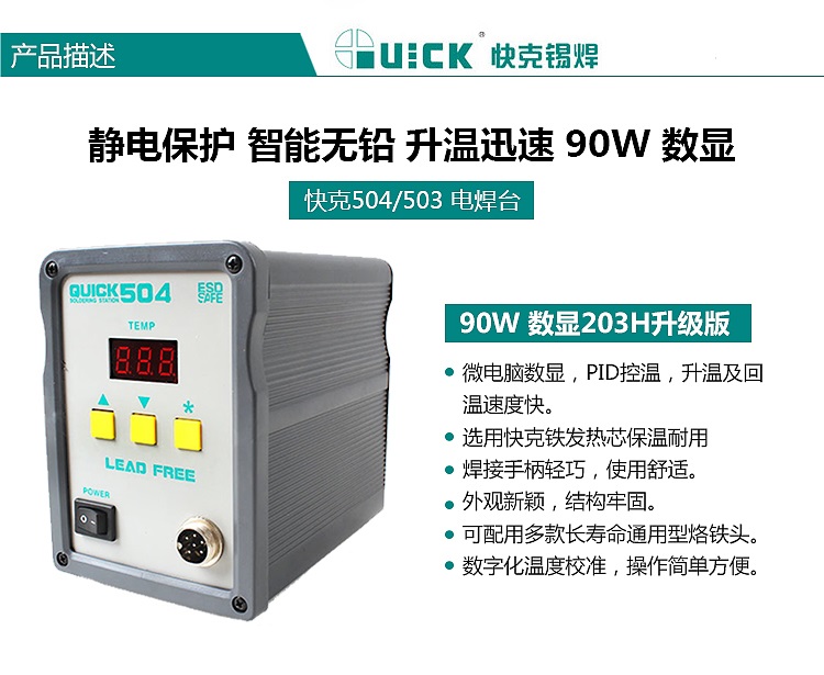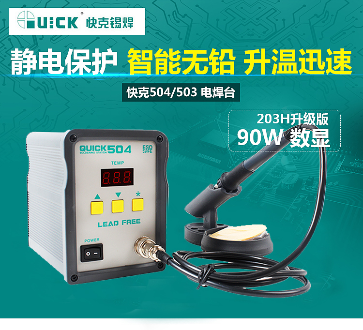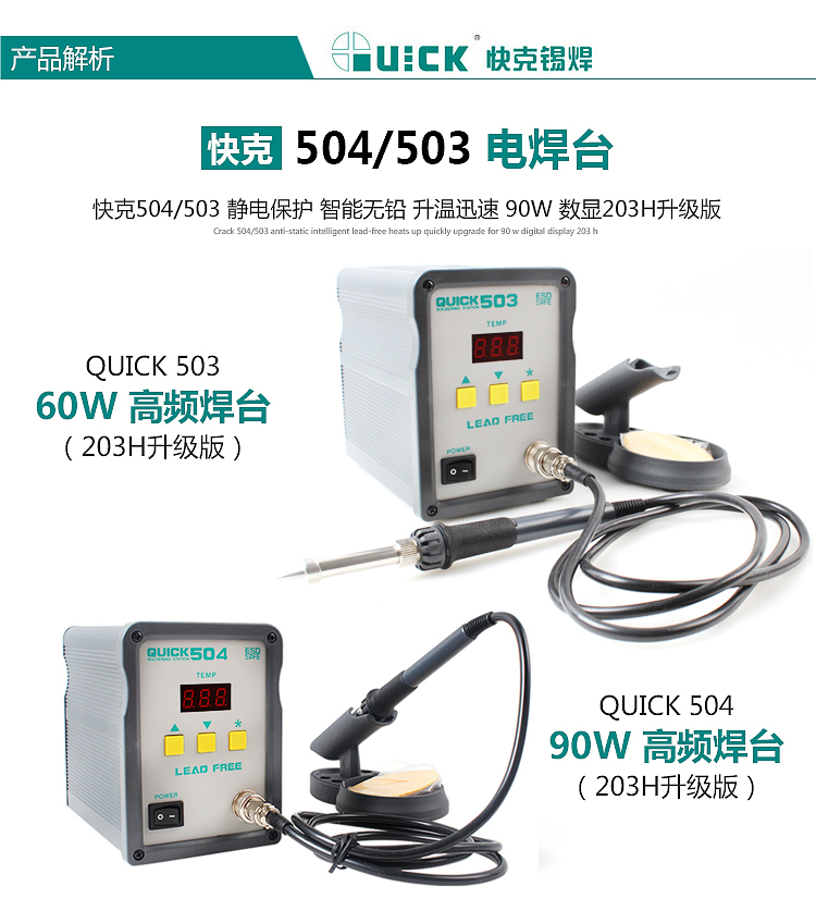 QUICK快克焊台503/504智能电焊台高频数显无铅烙铁60W/90W大功率