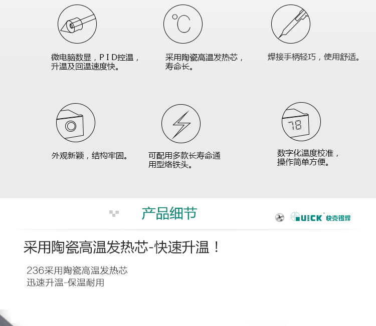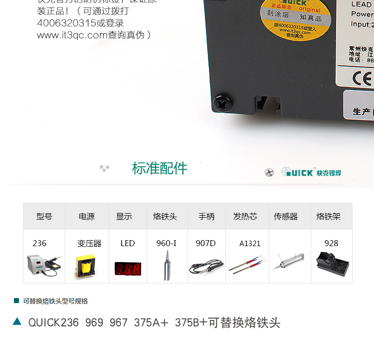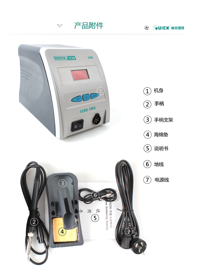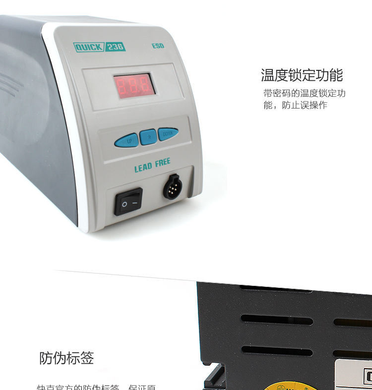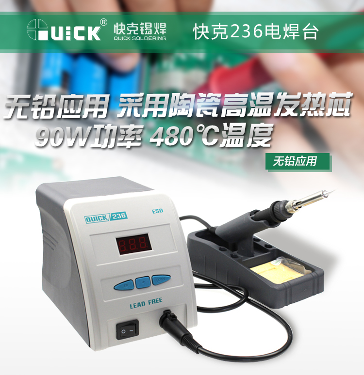 快克QUICK 236防静电无铅数显焊台90W进口发热芯高频电焊台电烙铁