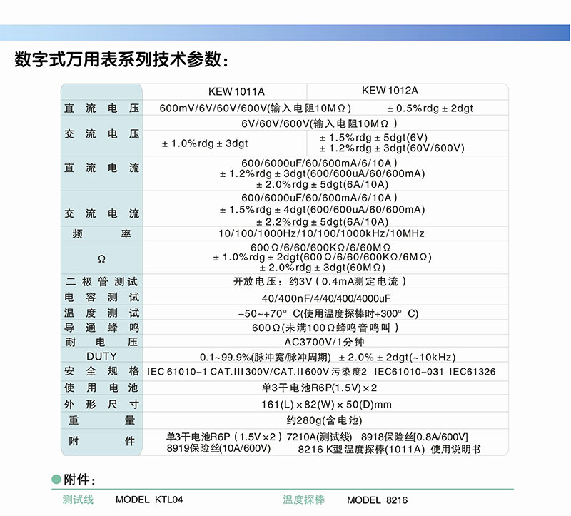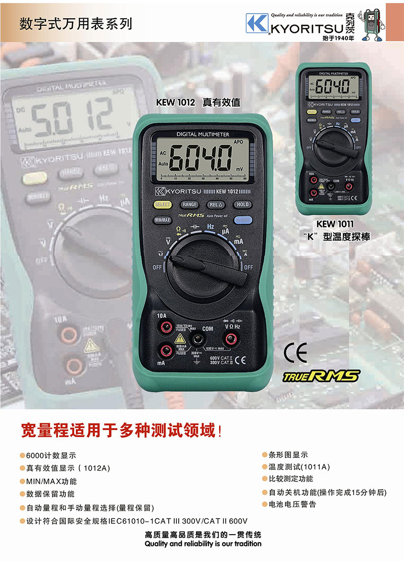 日本共立克列茨保障万用表 KEW 1011/1012自动关机/真有效值