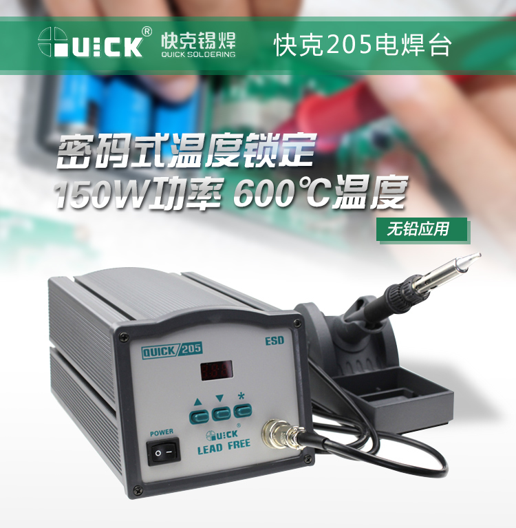 快克/QUICK 205大功率150W 恒温无铅焊台 电焊台 电烙铁