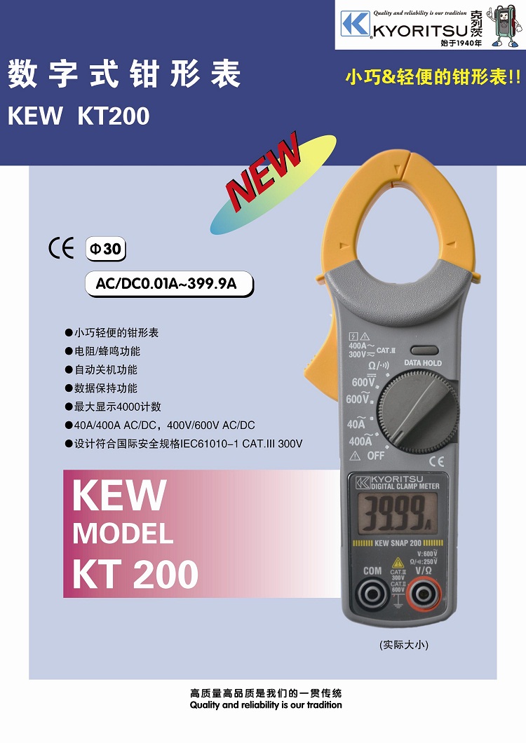克列茨日本共立仪器KYORITSU数字式钳形表KEW200