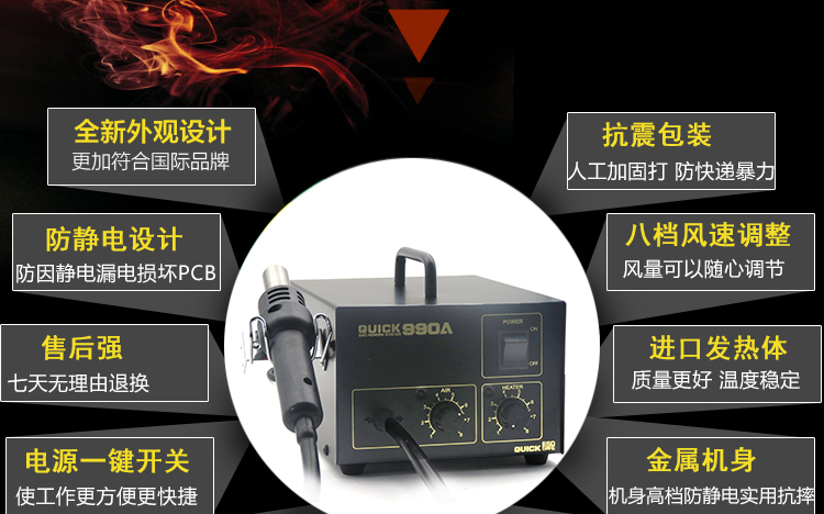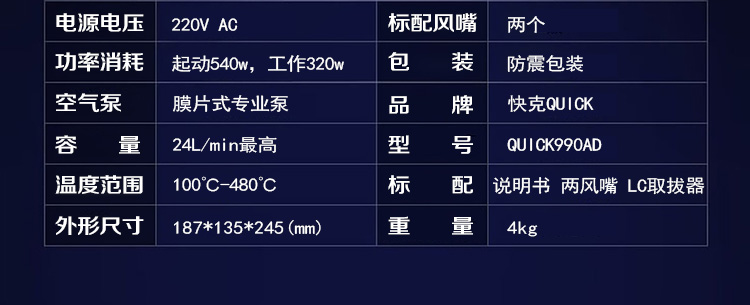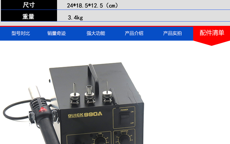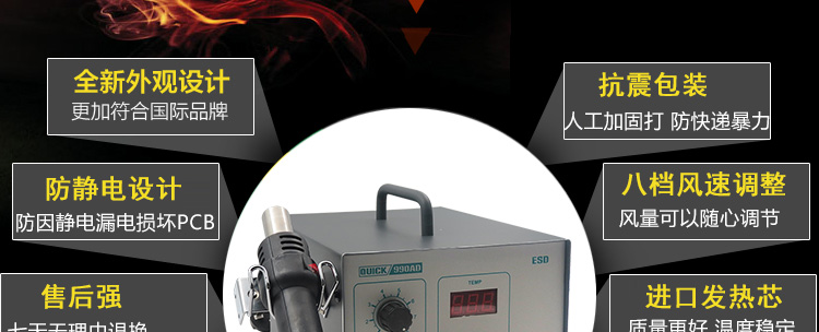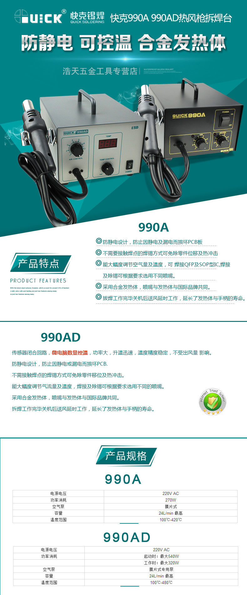 QUICK快克990A热风拆焊台990AD数显热风枪焊台 防静电热风拔焊台
