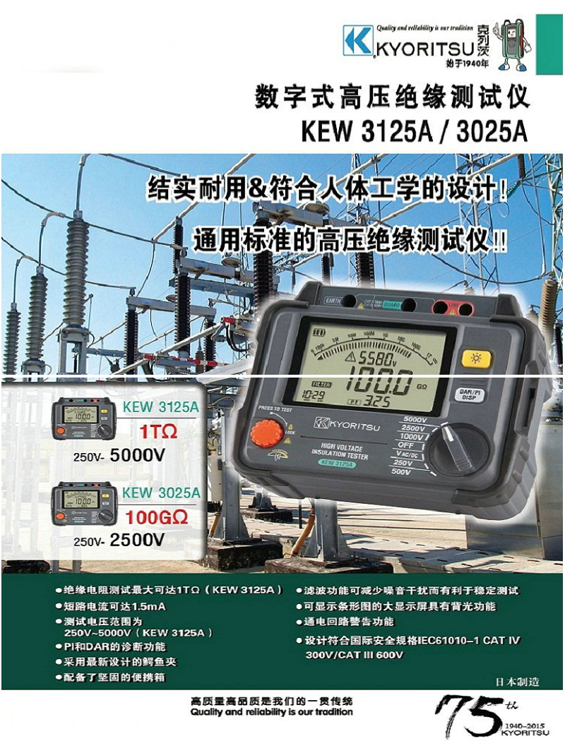 绝缘电阻测试仪 KEW 3025A/3125A 产品特点: