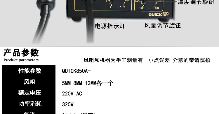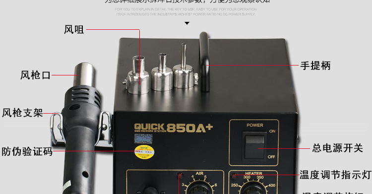 快克QUICK850A+热风枪 850A+气泵式热风枪 快克850A+直风恒温风枪