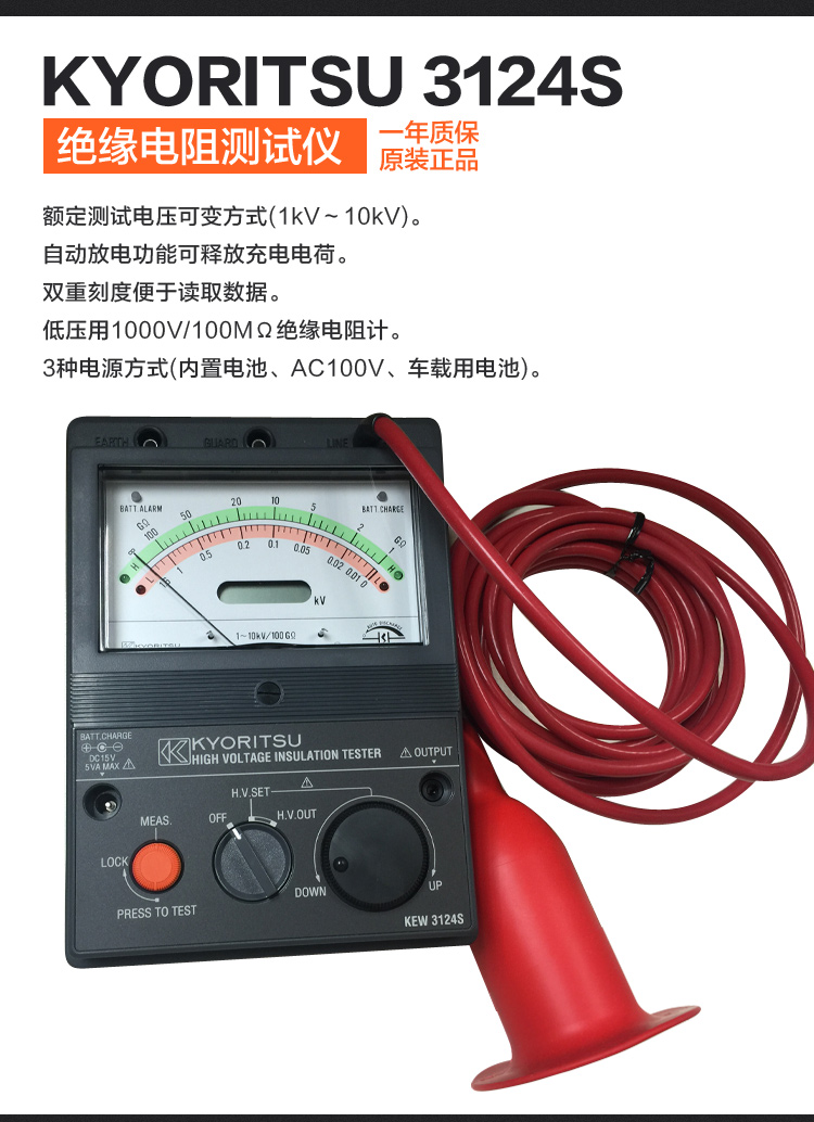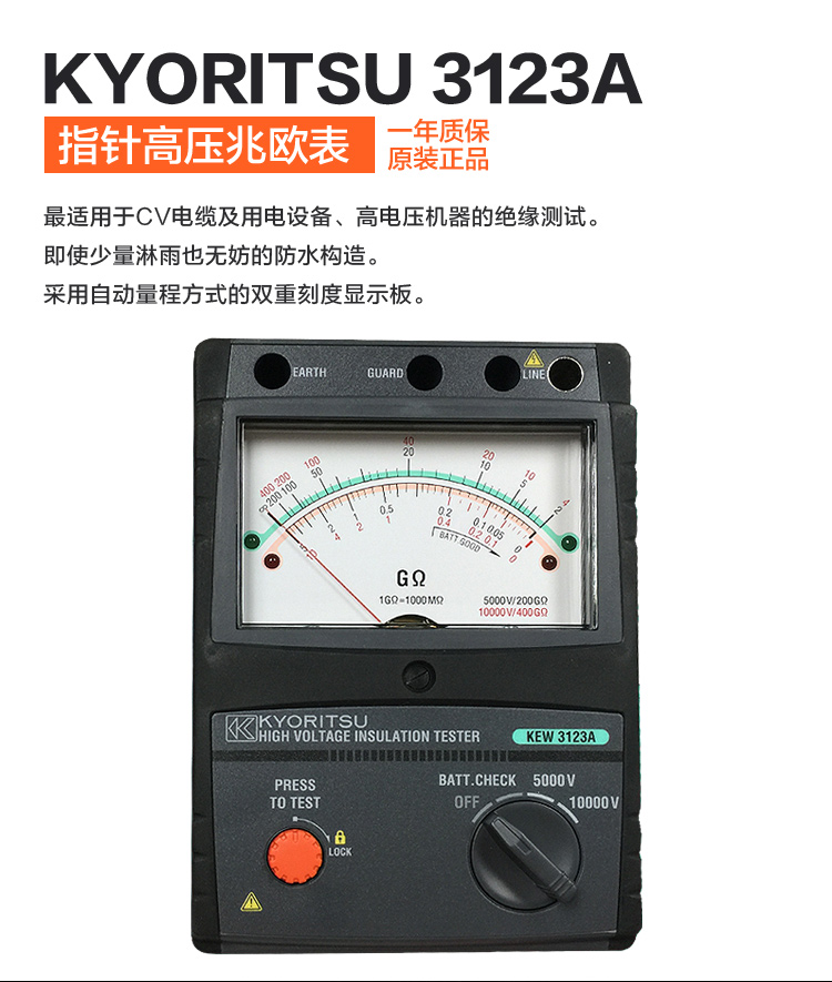 克列茨/日本共立 绝缘电阻测试仪 KEW3123A/3124S 指针10000V高压兆欧表