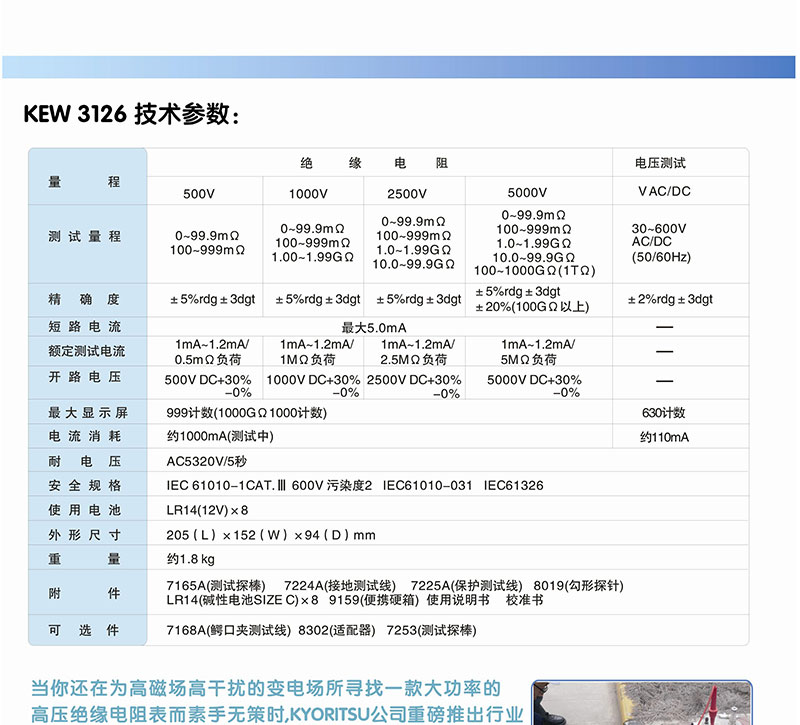 克列茨 日本共立KEW 3126高压绝缘电阻测试仪/绝缘500-5000V
