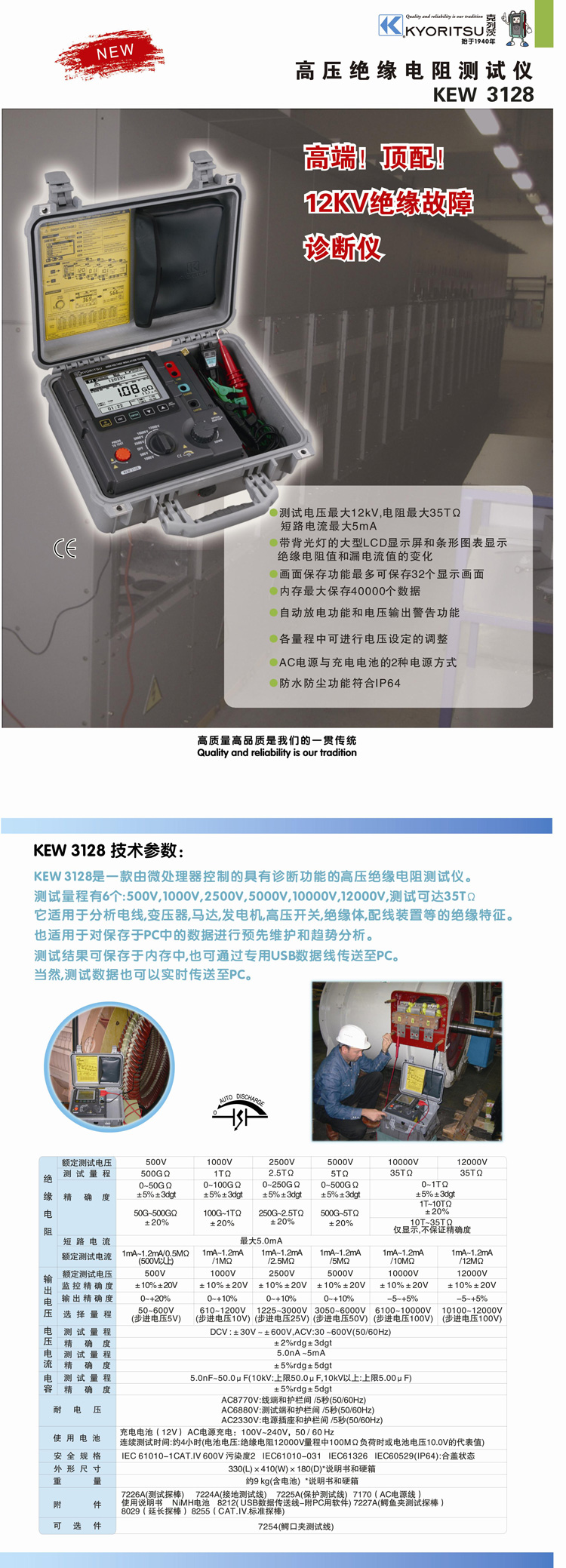 日本共立KYORISTU 高压绝缘电阻测试仪 KEW 3128