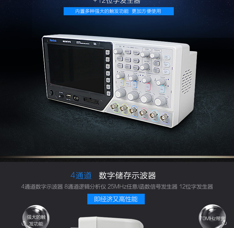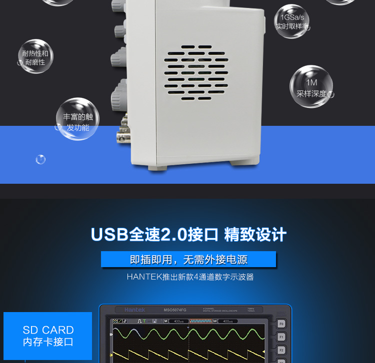 汉泰MSO5074F/MSO5074FG/4通道带70M数字示波器8通道逻辑分析