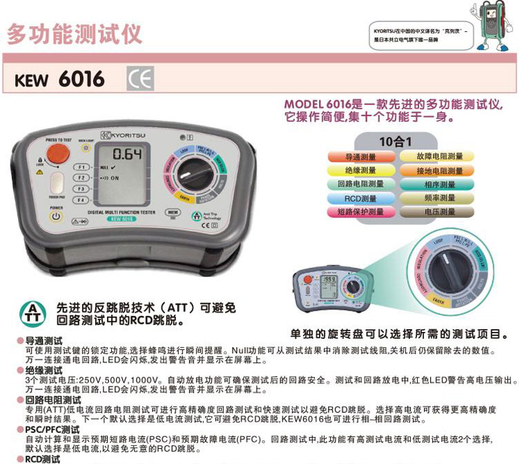 日本共立KYORITSU克列茨KEW 6016多功能测试仪