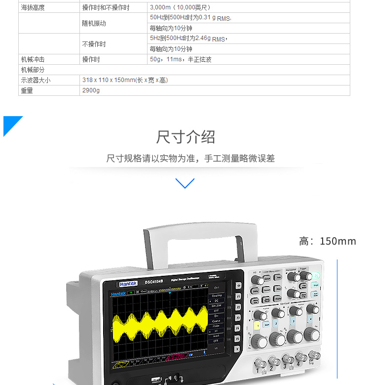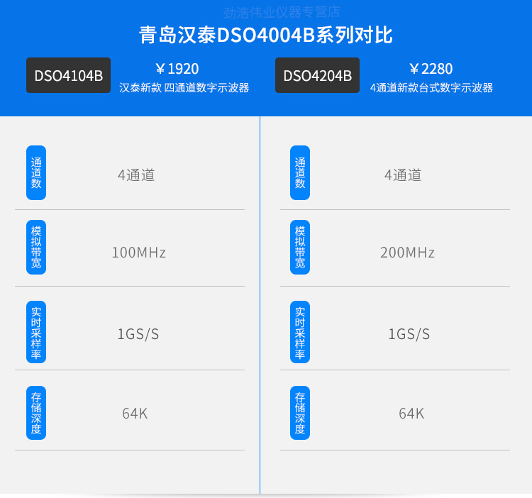 新款汉泰示波器DSO4104B四通道数字示波器100M台式示波器DSO4204B