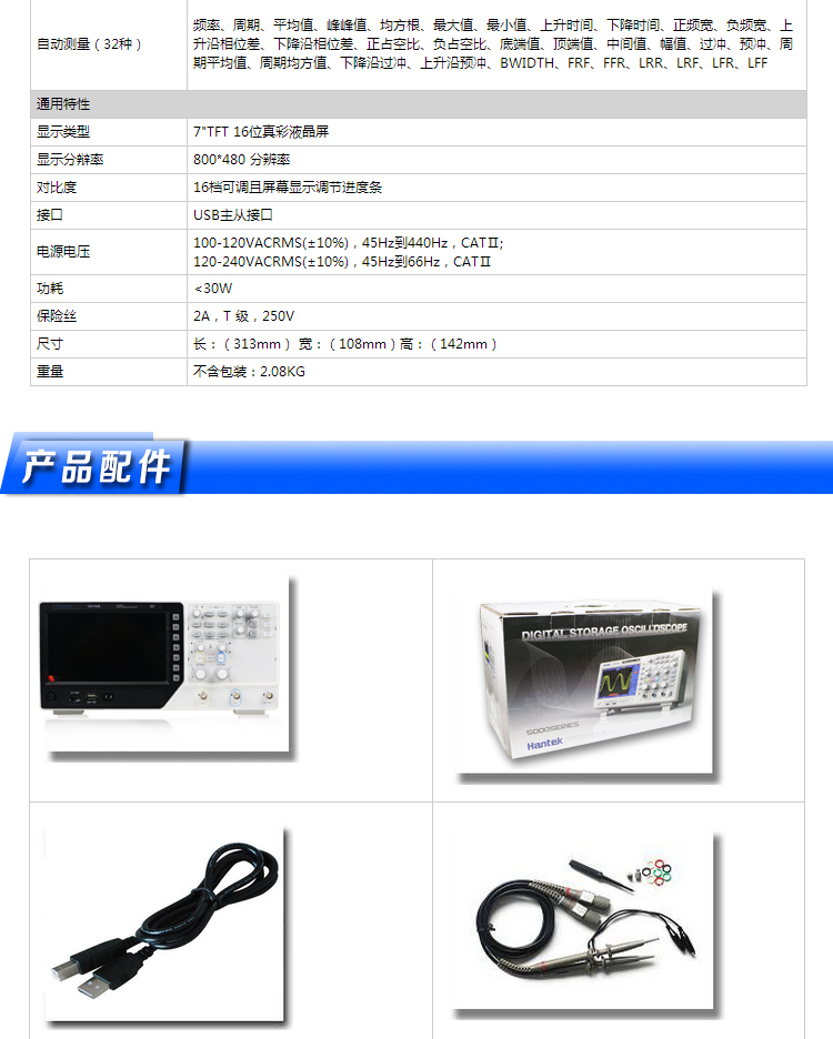 汉泰DSO7082B/DSO7102B/DSO7202B/DSO7302B双通道100M数字示波器
