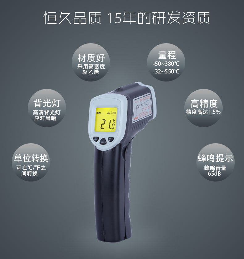希玛 红外线测温仪温度计手持高精度油温温度计工业电子测温枪
