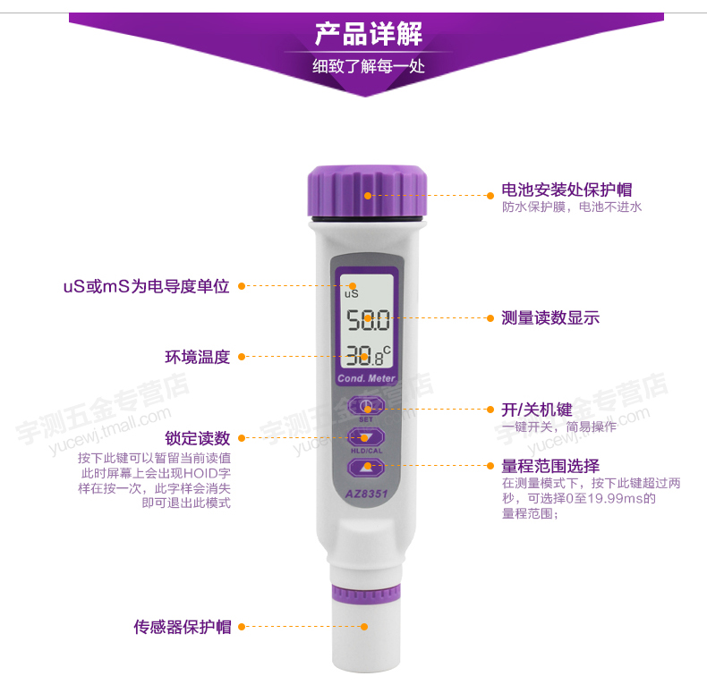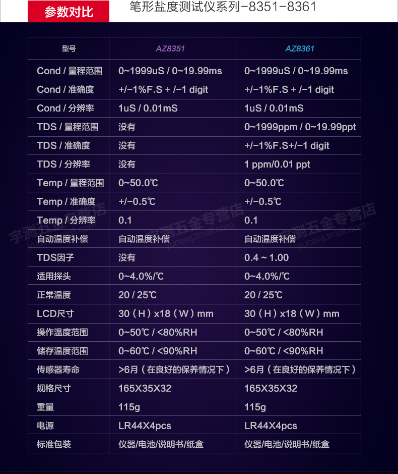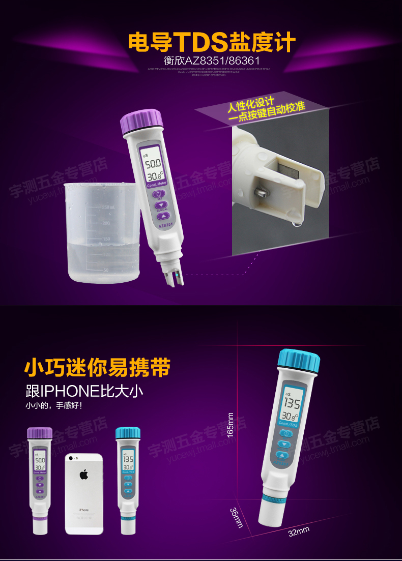 台湾衡欣AZ8361电导率仪 电导率测试笔 TDS笔 水质测试笔 EC计