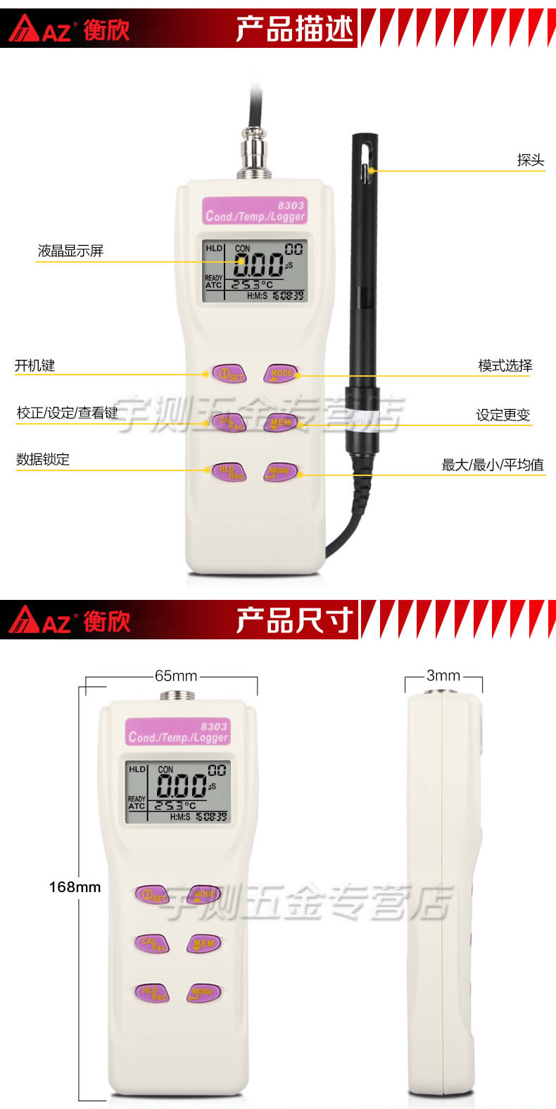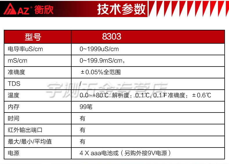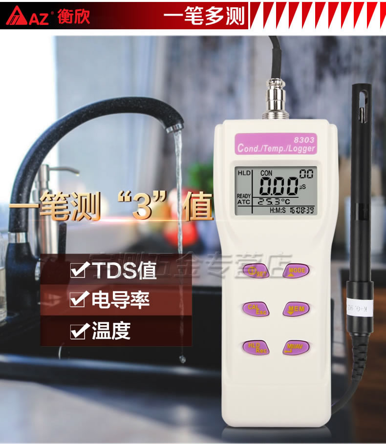 台湾衡欣AZ8303电导率测试仪 便携式电导率仪 电导率计 高精度