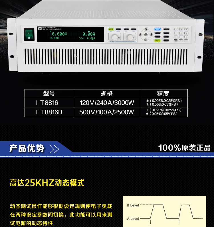 艾德克斯IT8816B单路高精度可编程直流电子负载500V100A2500W