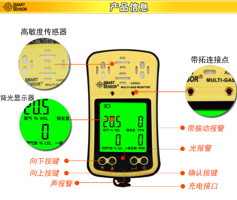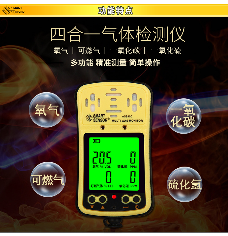希玛 四合一气体检测仪 可燃气体检测仪氧气检测仪硫化氢一氧化碳