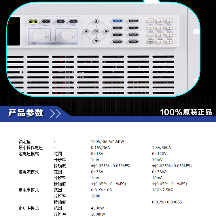 艾德克斯IT8817B单路高精度可编程直流电子负载500V120A3600W