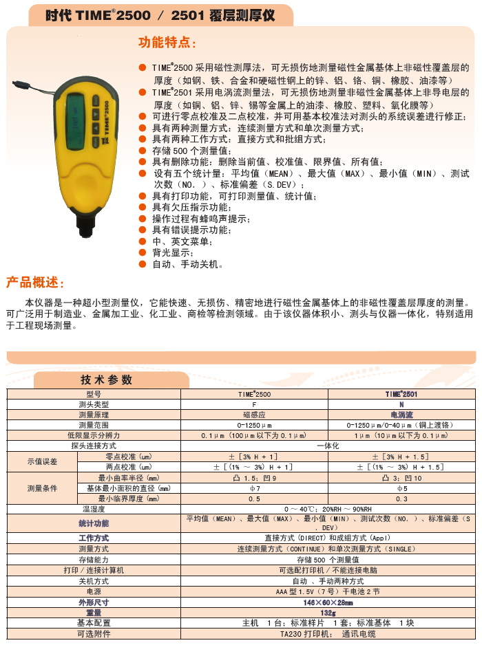 北京时代 TIME2500/TT220/TT210覆层测厚仪 镀层厚度测量仪厚度规
