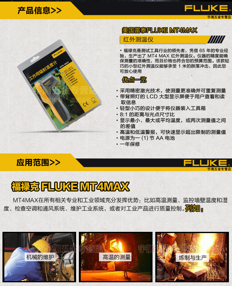 美国福禄克MT4MAX红外测温仪 FLUKE红外线测温仪手持工业测温枪