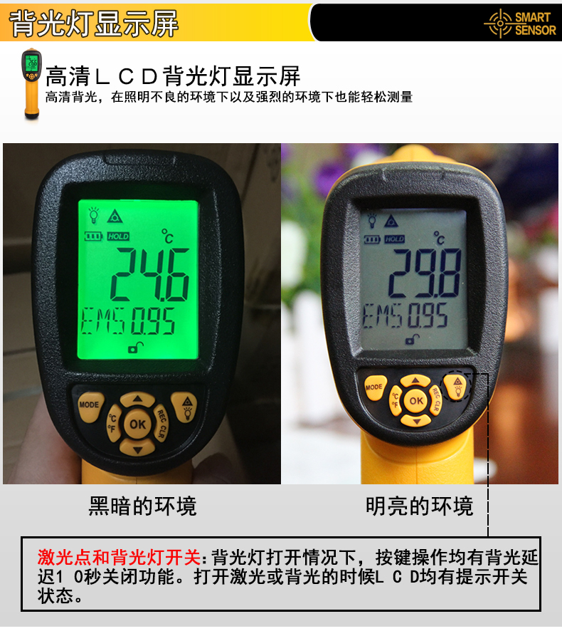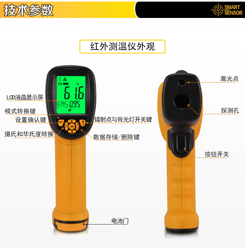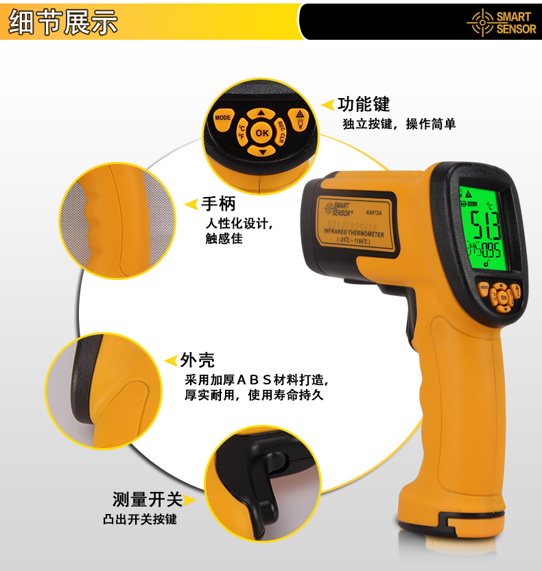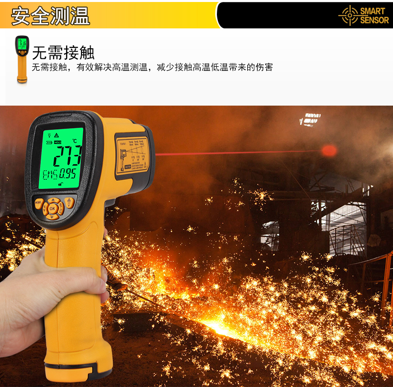 希玛 红外线测温仪高温工业红外测温枪高精度手持电子温度计