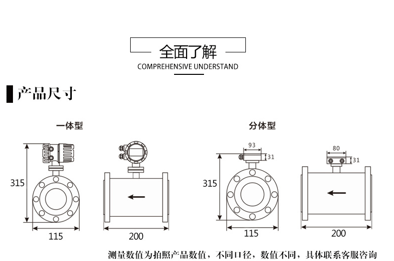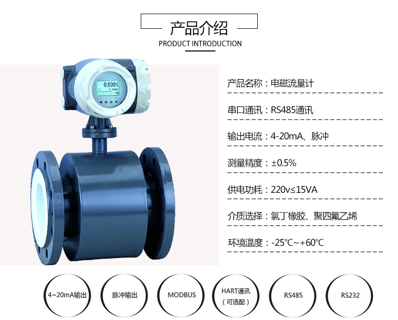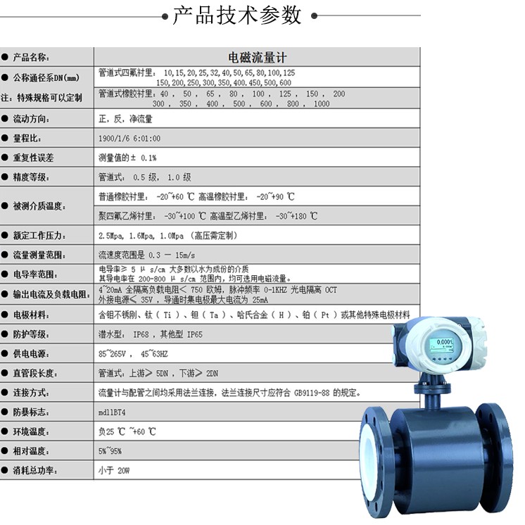 电磁流量计水液体污水废水泥浆管道智能一体式分体式dn25/50/100