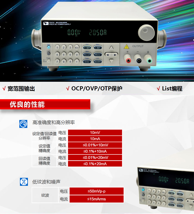 艾德克斯IT6722/IT6722A 80V/20A/400W 可编程直流电源