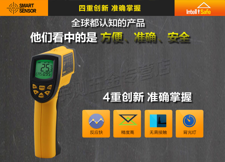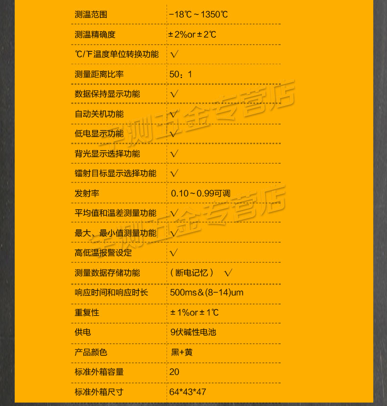中低温段机型,通过红外感应和光学原理可无需接触就能检测到远处物体的表面温度,相比传统的接触式测温仪具有测温反应快、精度高、无需接触、无耗材等优点,广泛应用于化学化工、环境检测、加热制冷、无损检测等行业。吸塑或胶盒包装。