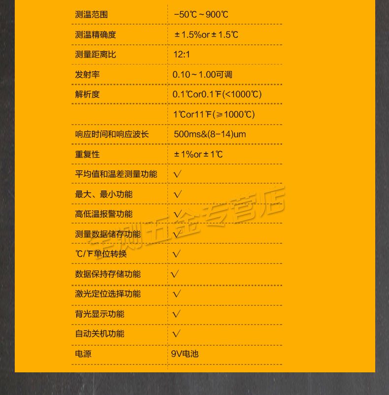 测温范围 -50℃~900℃(-58℉~1652℉)