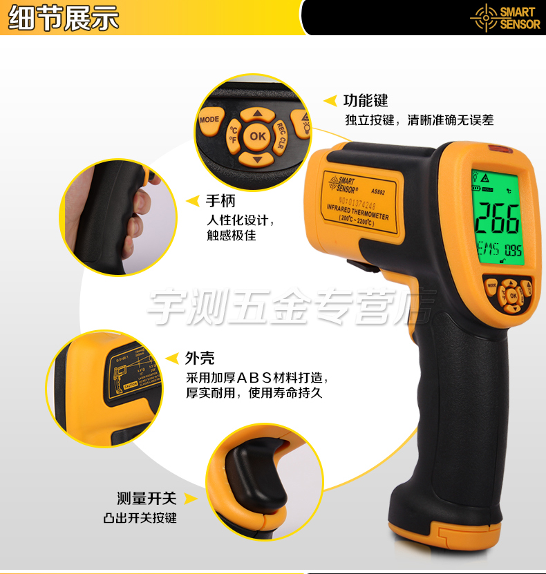希玛 红外测温仪手持高温红外线测温仪高精度工业电子测温枪