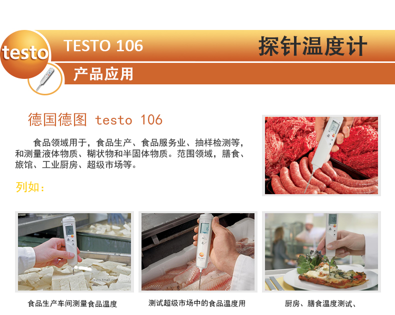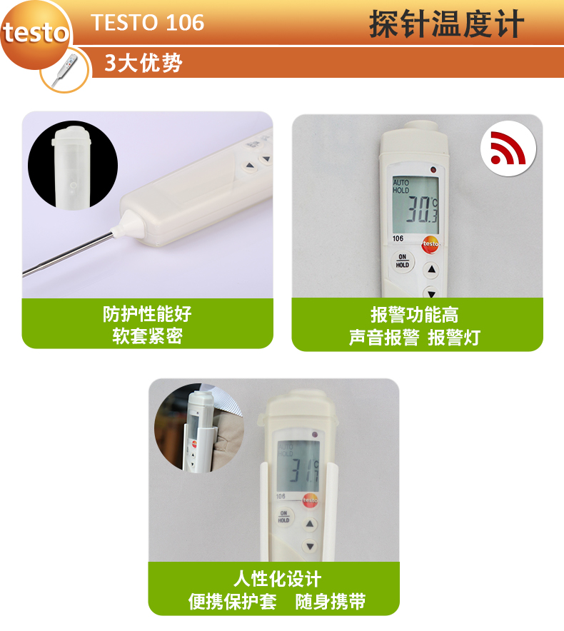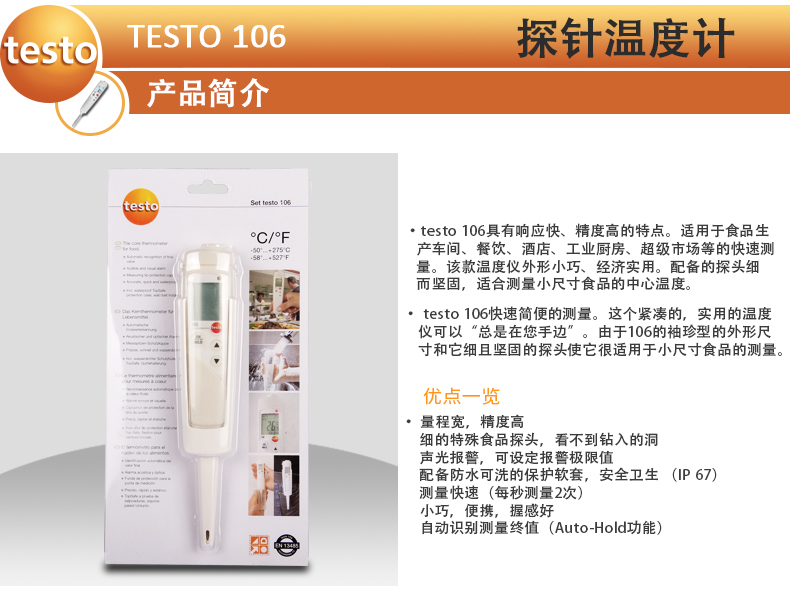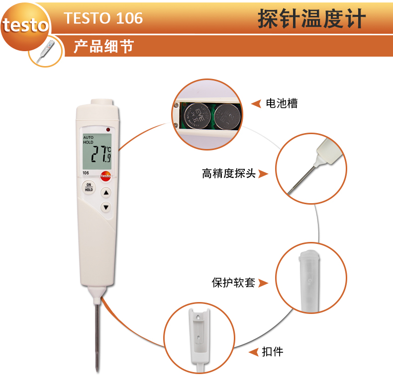 德国德图TESTO 106食品中心温度计防水笔型探针温度计袖珍高精度