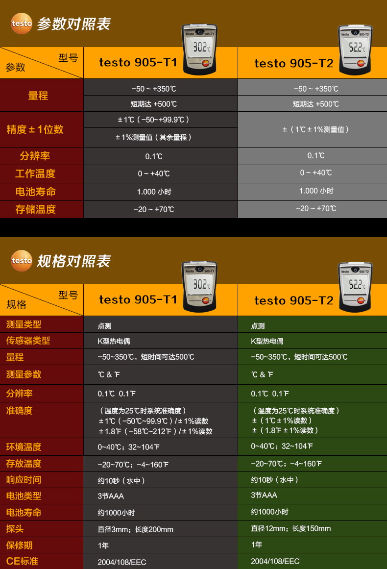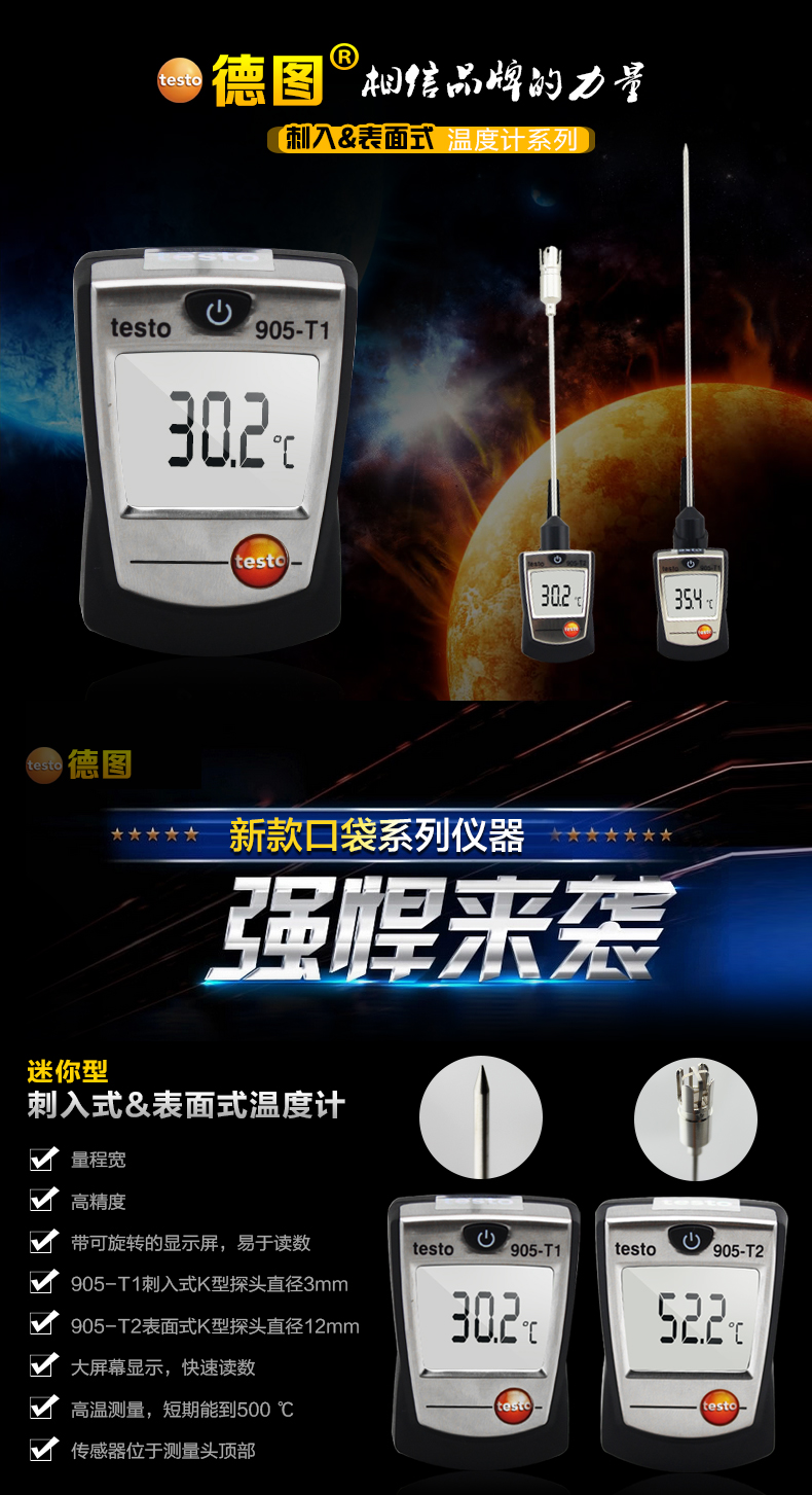 德国德图TESTO 905-T2接触式测温仪数显表面温度计探头温度表工业