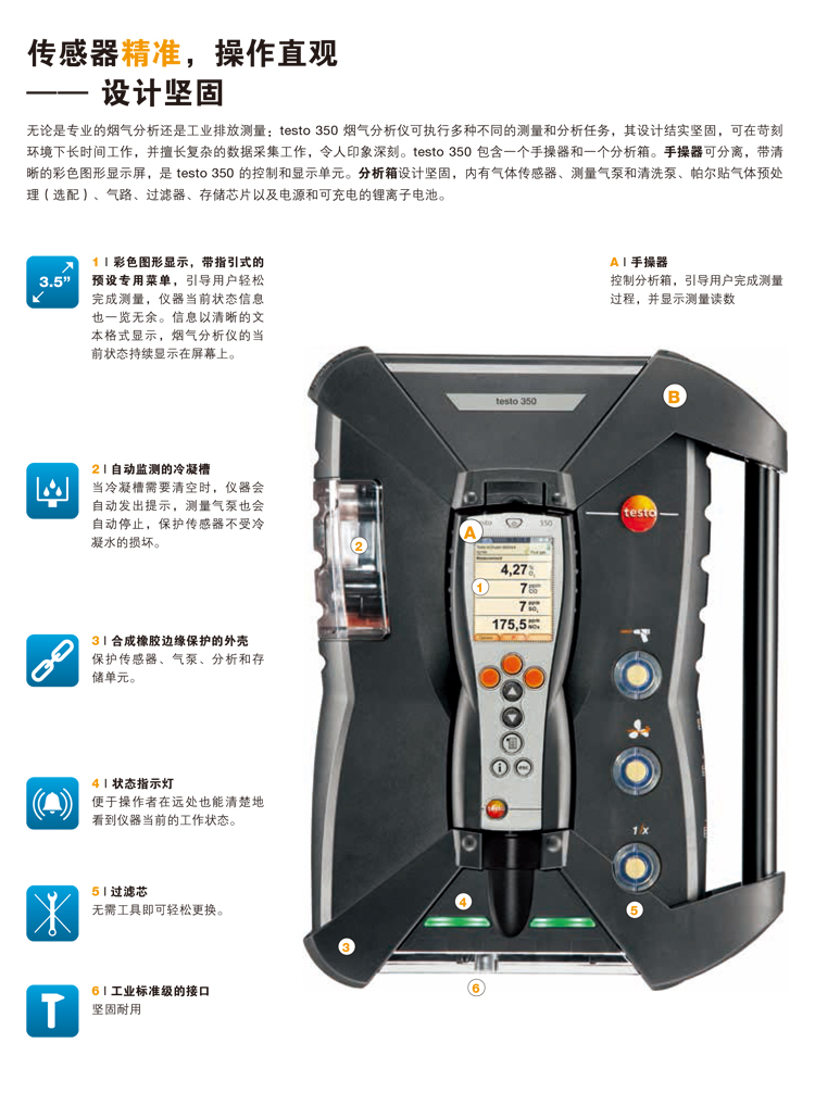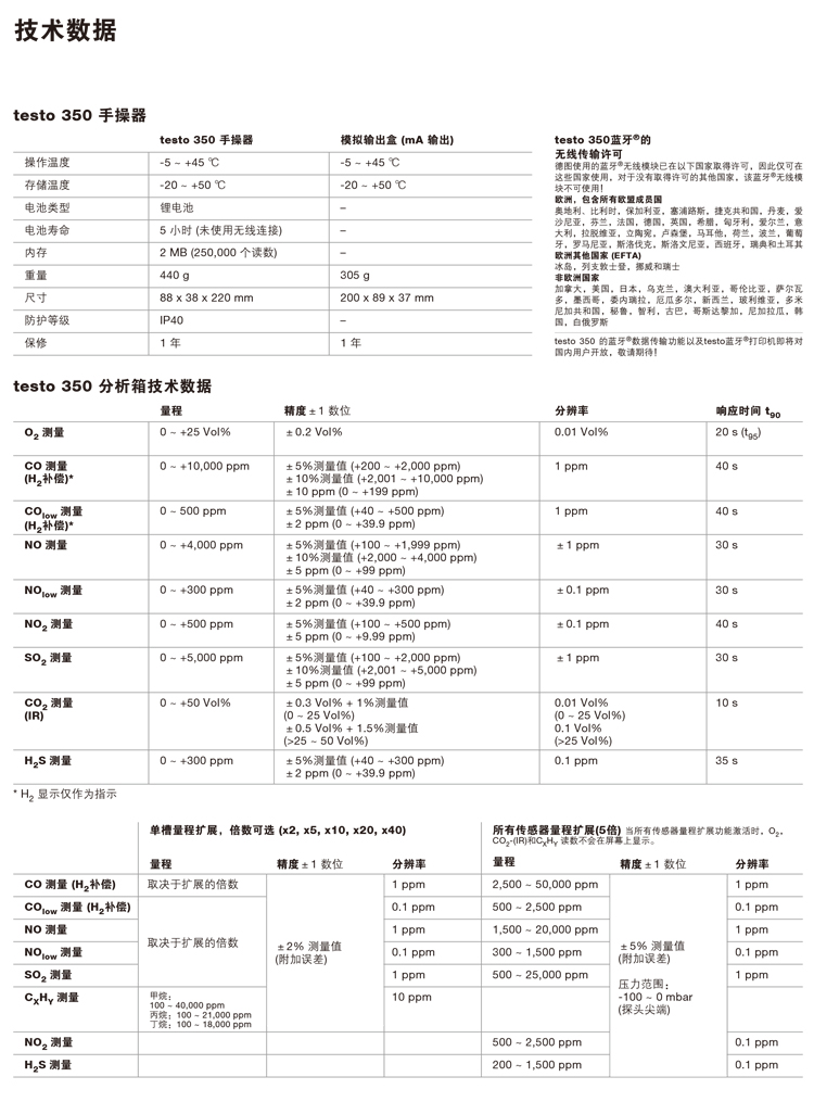 德图TESTO350烟气分析仪套装燃烧效率分析配件烟气探针传感器