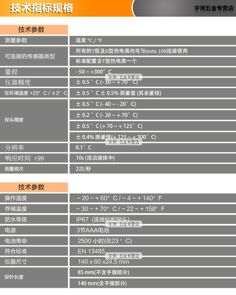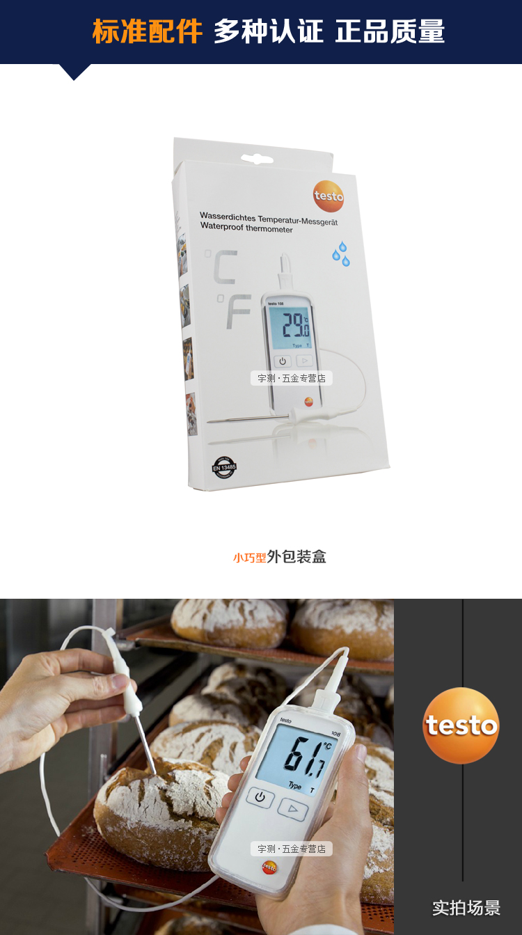 德国德图TESTO 108高精度温度表食品中心温度计防水探针温度计
