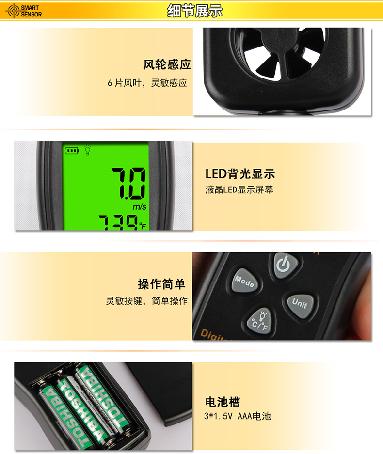 希玛 风速仪 测风仪 风速计 风速仪手持式高精度 叶轮风速测量仪